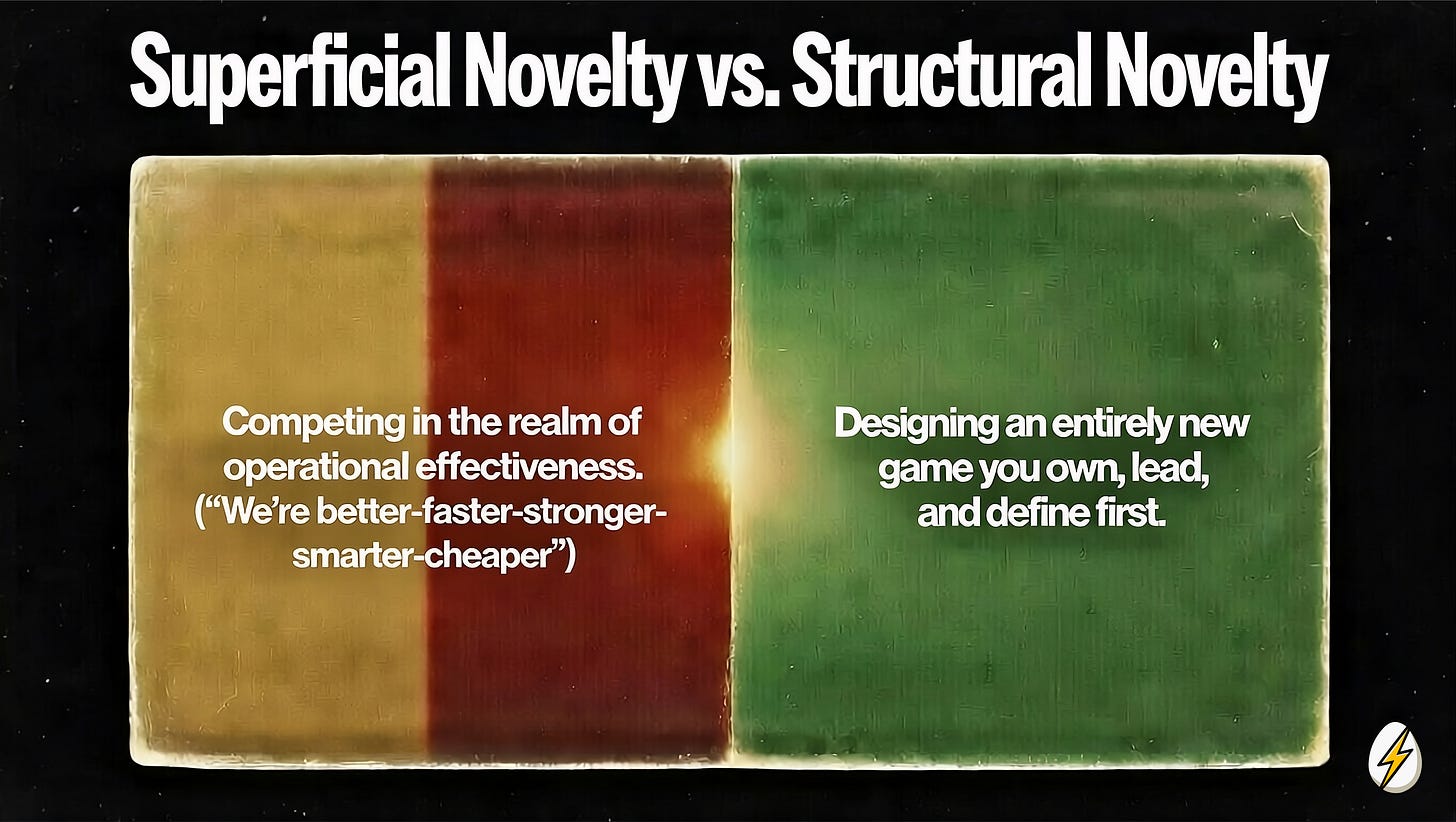Superficial Novelty vs. Structural Novelty: Every Lean Agency Founder Is Either Stuck In Someone Else’s Game Or Creating Their Own